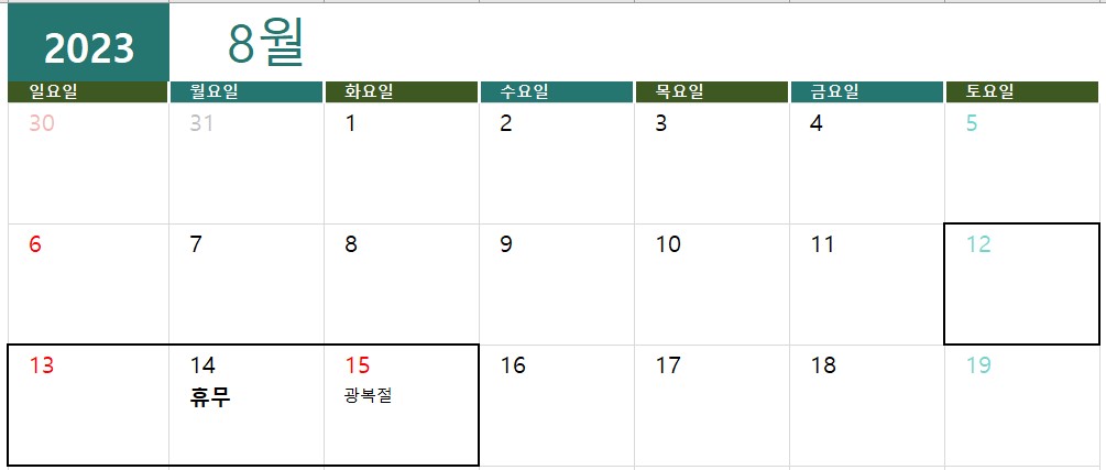 | 2023³â 8¿ù ÈÞ¹« ¾È³» | |||